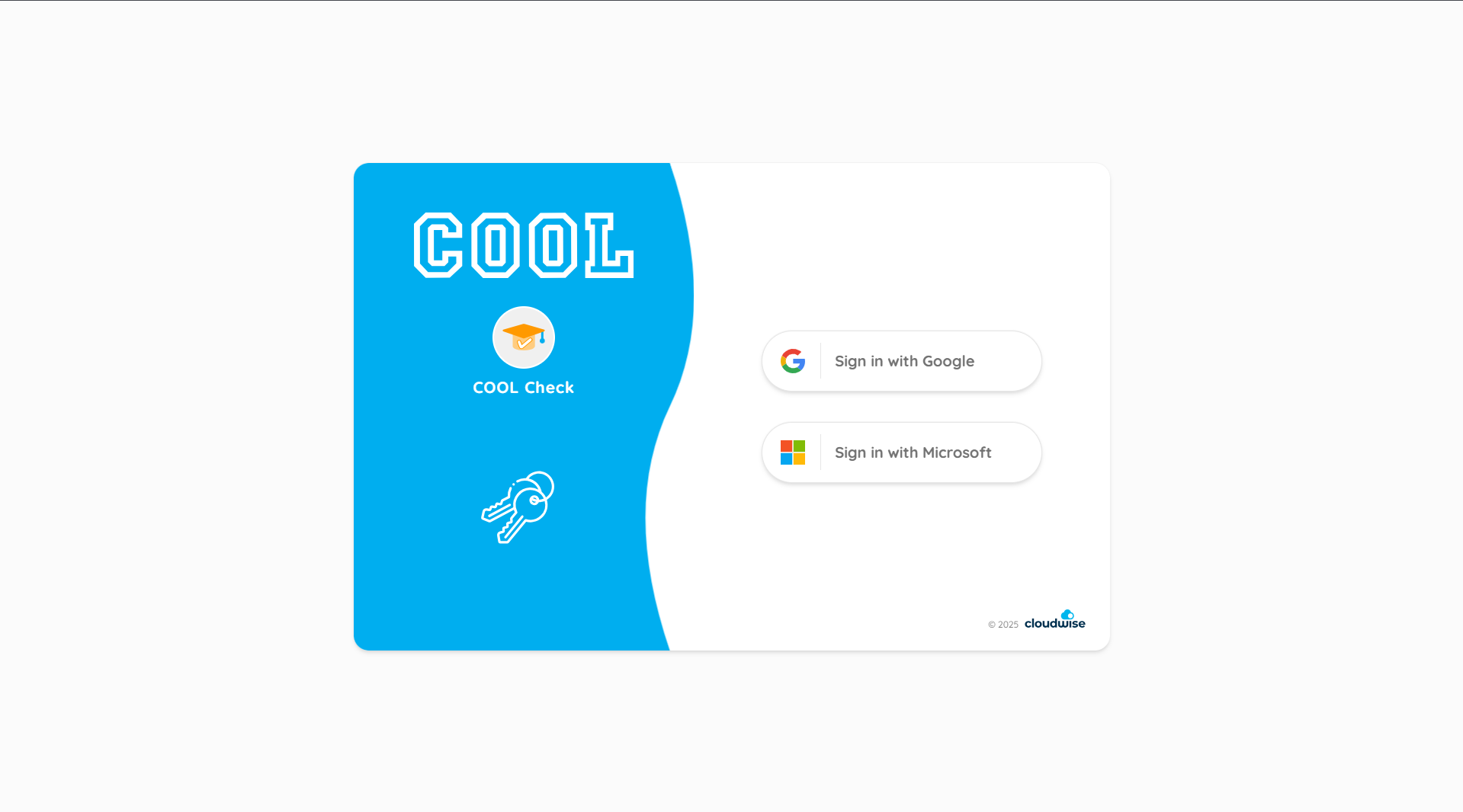 Wanneer de leerling op COOL Check heeft geklikt, krijgt hij de keuzemogelijkheid om in te loggen met een Google-account of een Microsoft-account.