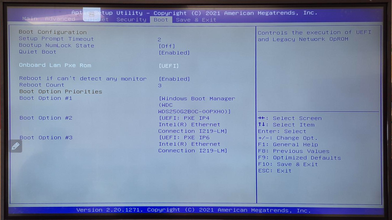 - Boot - Onboard Lan Pxe Rom: UEFI